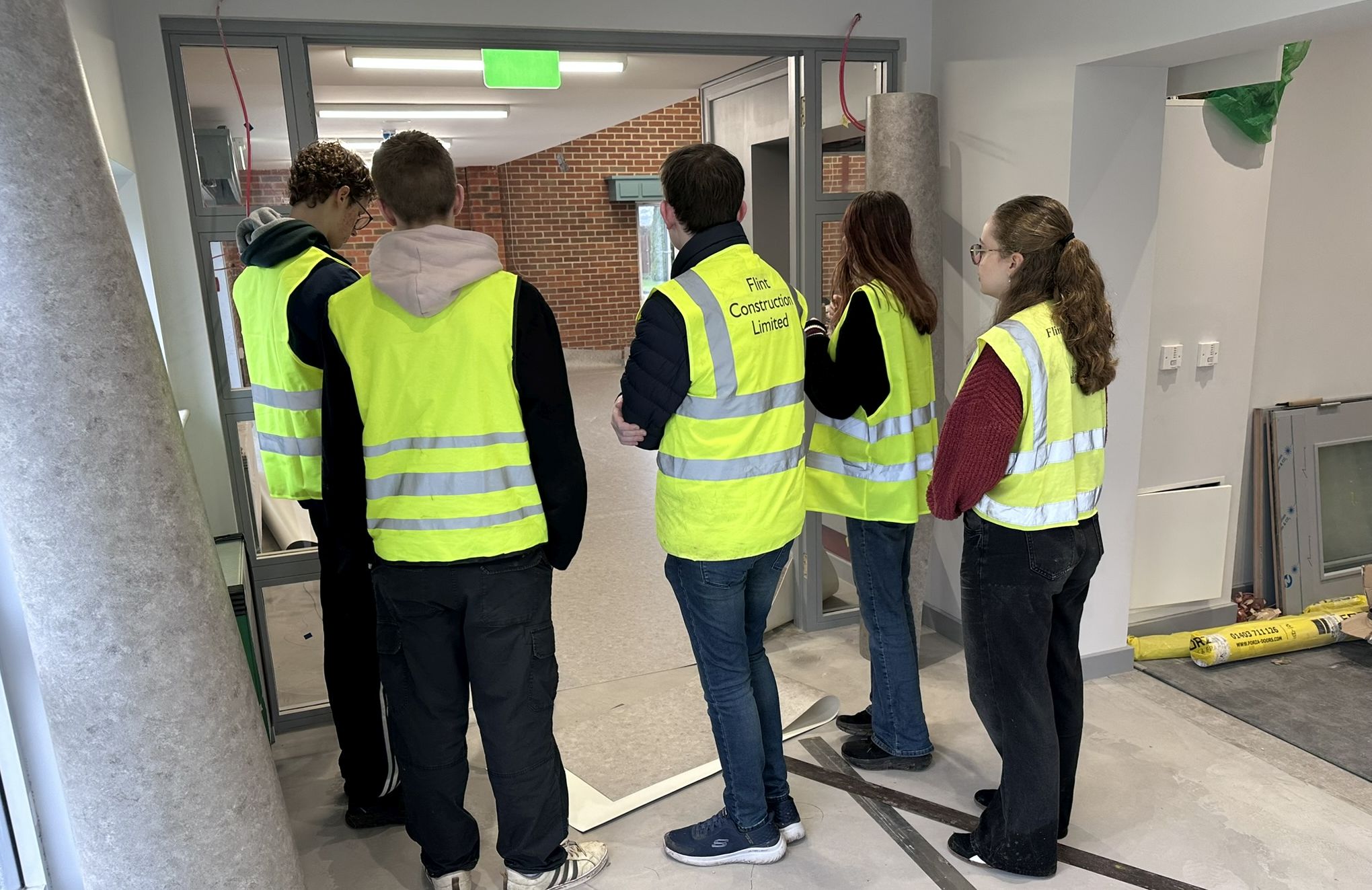 Heading photo: Students from Alton College making a video of the site construction.